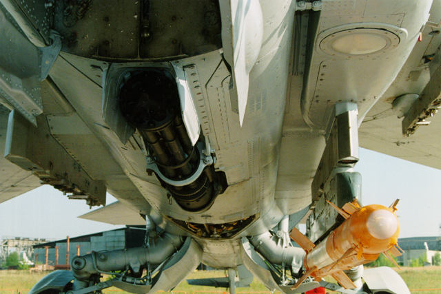 El GSH-30-6 nace por la necesidad del ataque a tierra no? Vamos que son los tiempos del Mig-23 y la apaarición especializada del Mig-27... le quitan el bi-tubo de 23 mm GSH-23L y le colocan el nuevo GSH-30-6 con lo que mas o menos dispara lo mismo... (hay diferencias) pero casi 4 veces mas rápido.