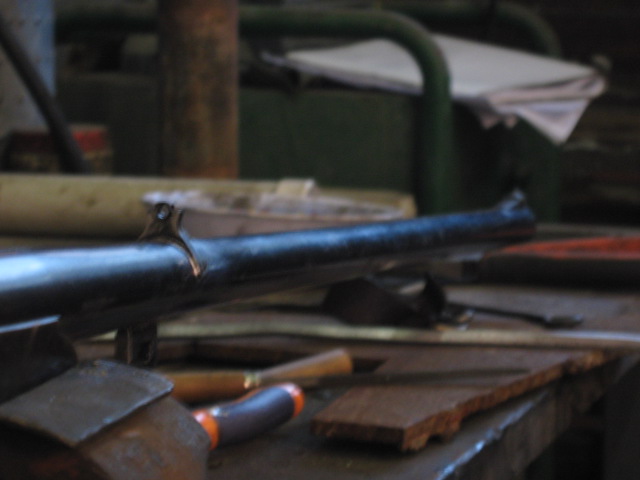 Lo solde con estaño.No me anime a meterle mucha temperatura a la recamara. Por eso tiene tanta superficie la pieza, para que no se desprenda asi nomas. El pavon se lo saque despues con cloruro de hierro, en las partes para soldar antes, obviamente. Tengo un pistolon asi, gris, no se oxida si no te d...
