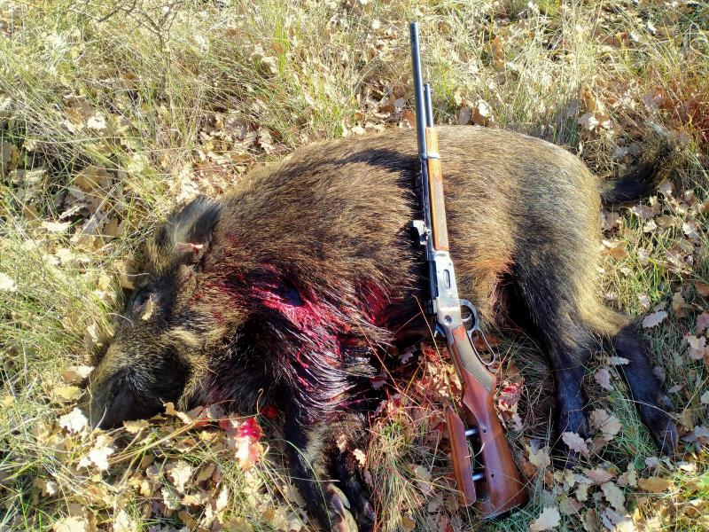 Jabali de 90-100 kg abatido el sabado pasado en Huesca con el Winchester 94 del 444 marlin.