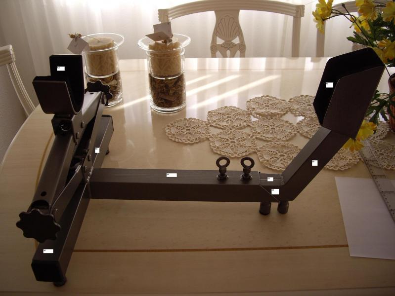 Como un banco de tiro me parece mucho aparato y muy caro para poco uso, había pensado en un "soporte para tiro". Veo que te permite apoyar el rifle adelante, atrás, y apoyar la culata en el hombro agarrándola como en el disparo normal. Tiene 4 patas de goma, te permite además modificar la largura y elevación, y después de disparar también podría hacer la corrección sin que se mueva. Lo apoyaría en el capó del Terrano sobre una base de espuma dura que tengo por ahí.
