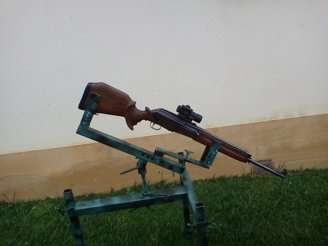 En cualquier desguace de coches, te puedes hacer con un gato y con un poco de ayuda y maña te puedes hacer un buen banco para poner el rifle a tiro, hace tiempo ya abrimos un post en el foro con este tipo de inventos. Te dejo una foto del mio para que te hagas una idea.