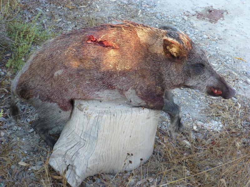RafaelM escribió:Después de algunas esperas infructuosas por fin he podido probar estas Geco T mantel de 170grains en un jabalí de unos 50 kg a una distancia de unos 60m y el destrozo ha sido impresionante,el impacto lo recibió unos 4 dedos por debajo de la columna vertebral y cayó fulminado al suelo,trató de levantarse(cosa que no pudo hacer)y entonces le volví a disparar una segunda vez entrando la bala por la paletilla delantera derecha, (tocó hueso y fracturó la pata por completo)y destrozando todos los pulmones y corazón del animal.