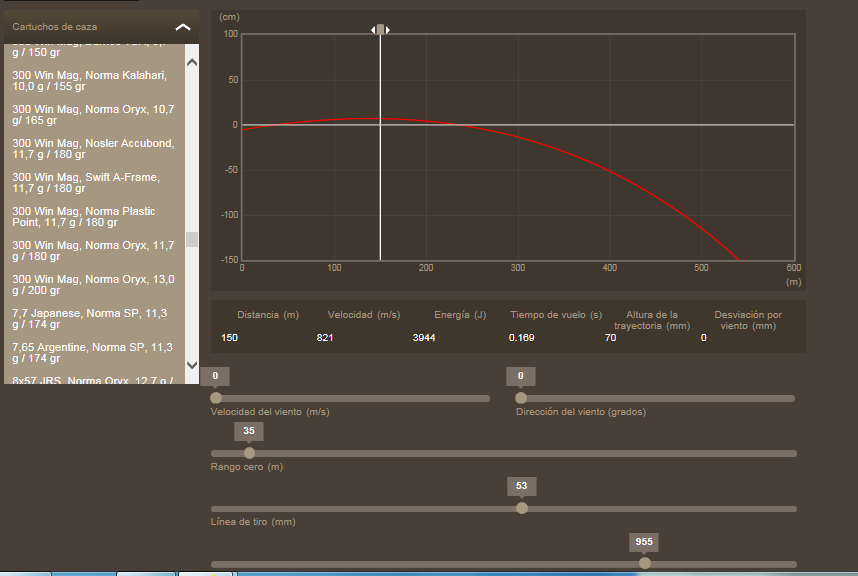 danielgm escribió:yo he calculado con el otro mencionado que es el 9,3 y a 100 metros uno viaja a 657 m/s y el 300 a 850 m/s la diferencia es de 35 cm (al jabalí de antes) que es significativo, otro aspecto es el no preocuparte por la caída, yo lo digo por los recechos que aunque no se hable de ello hace que el calibre sea compatible yo pongo el mio el primer 0 a 35 metros y el segundo cae a 250 con lo cual tengo cubiertos 300 metros sin caída y con una altura máxima a 150 metros de 7 cm por encima del blanco.