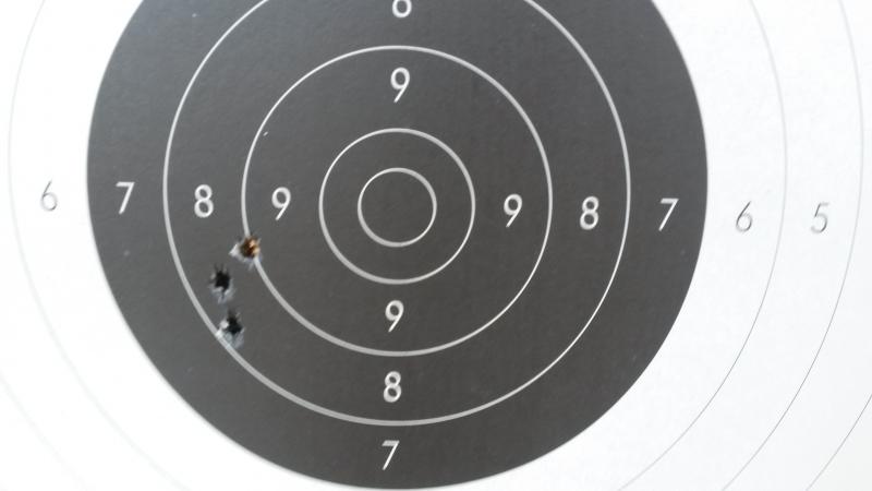 Pues mira la "imprecision", el dia que lo probe a miras abiertas con municion comercial hice esto a 100m apoyado, en el campo de tiro de Murcia