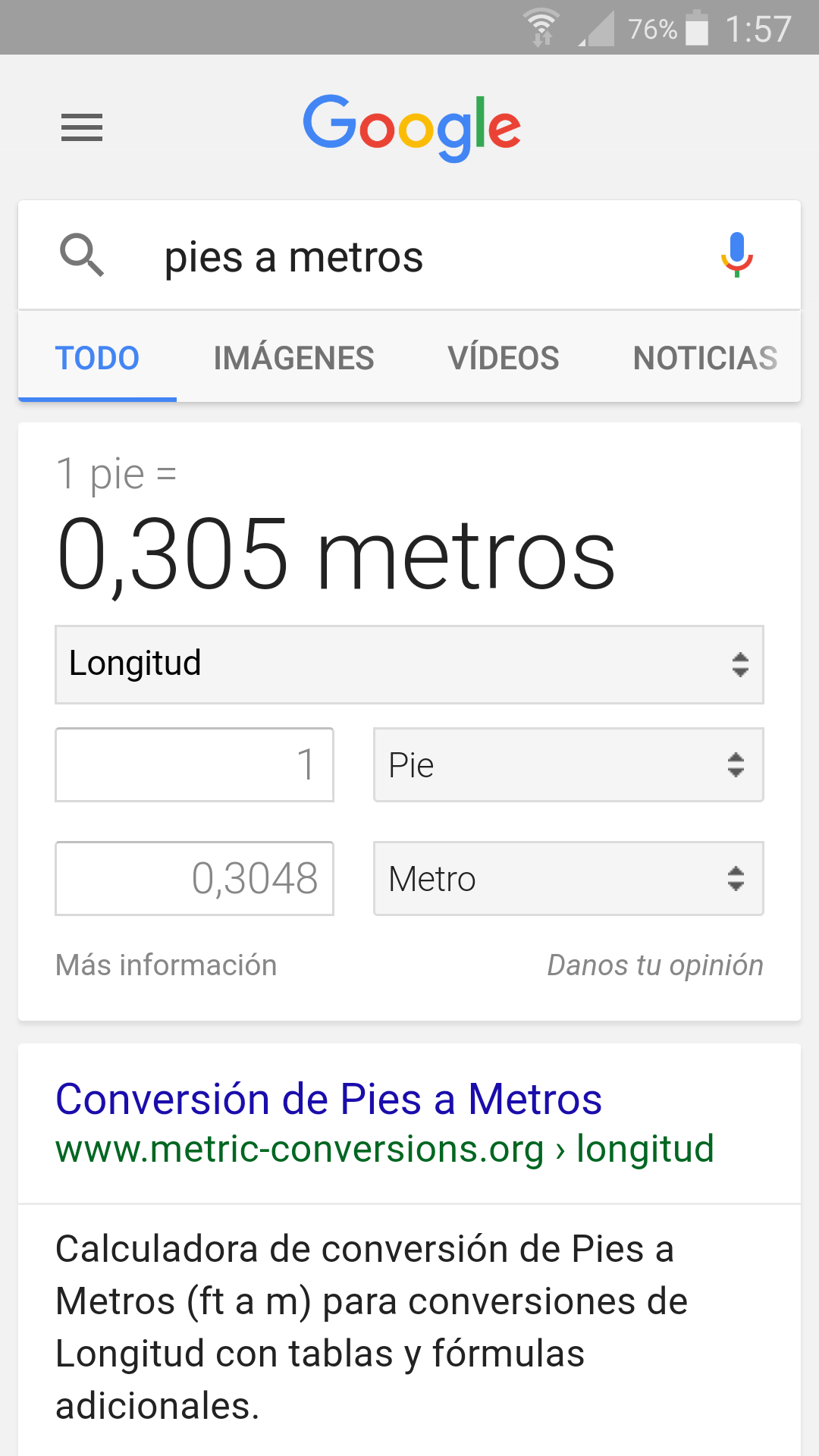 Y estas usando de forma errónea las unidades, estás multiplicando los metros por 3,048, cuando deberías multiplicar por 3,281.
