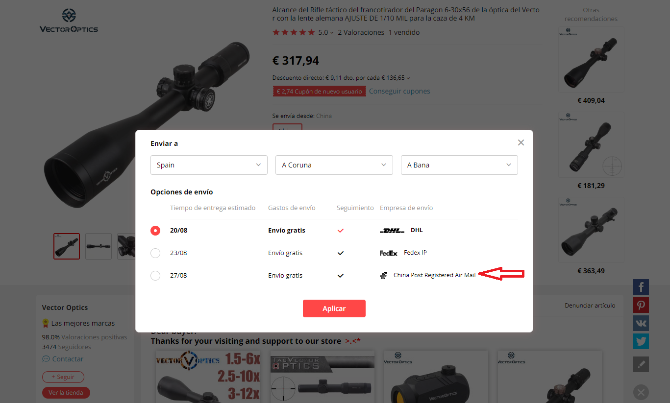 Ojo con la compra de los visores Vector en el lejano oriente, si bien es cierto que ciertas ganas como la Paragon son bastantes buenas para su precio inicial de venta, me sé de varios casos que aduanas le ha pegado la consiguiente mordida, además para liberar el producto piden licenciada caza o tiro, cosa curiosa.
