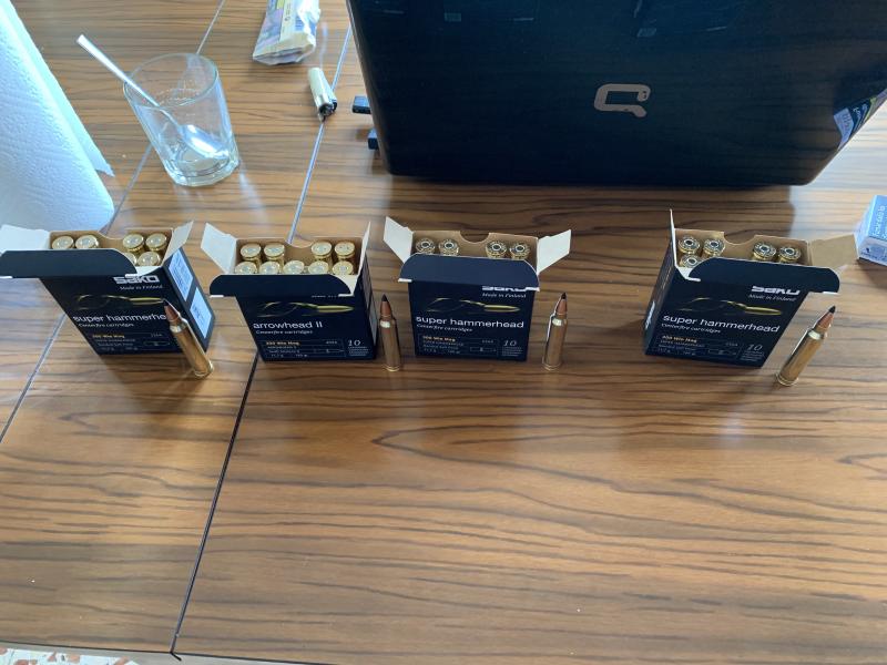 Por tanto me ha dado otras 4 cajas de otro lote, enseñándomelas me he dado cuenta que en 3 cajas de las 4 pone Sako Súper Gamer Headtras comentárselo las hemos abierto y llevaban dentro la bala Arrowhead 2... me ha mosqueado bastante pero me ha insistido que como era la misma bala no hubiese problema y que las probase, si me daban el mismo problema ya le llevaría el Rifle y la balas para examinar más minuciosamente el mismo.