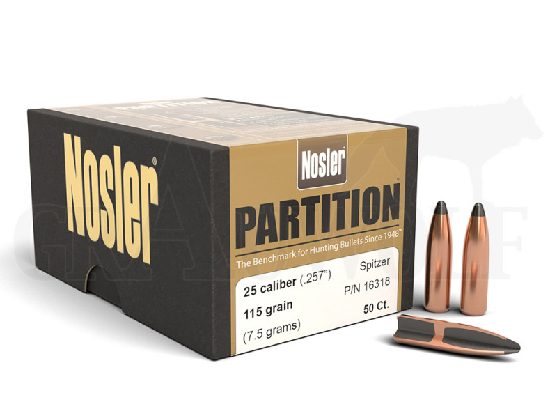 En tu caso probaria la Nosler Partición de 115 grains. Aseguras una buena penetración sin que se te desintegren las puntas por la altísima velocidad de tu calibre. Creo que con tu 257 Wheaterby andarás por encima de los 3000 fps con este peso.