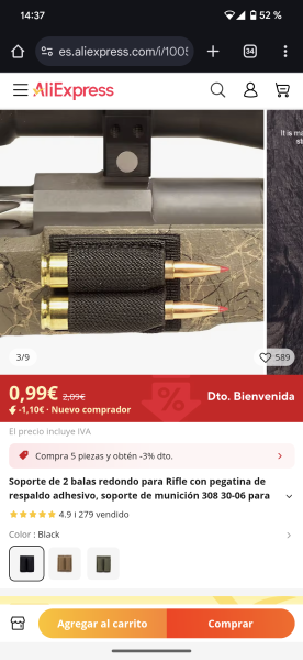 Vagamontes escribió:Al final he pillado este soporte de dos balas en la tienda de marras. Vienen tres unidades de tres colores distintos. Aunque después me acordé que mi correa tiene para llevar dos balas puestasYa veré cual uso.