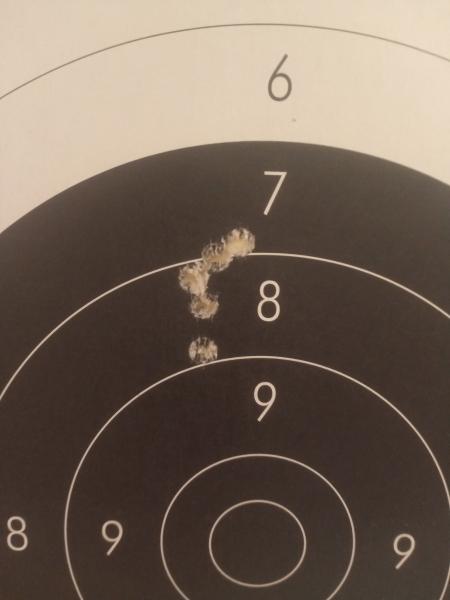 Aunque tiene un ligeramente distinto punto de impacto, porque lo puse en tiro con la Sierra GK SBT de 150, está munición va y me hace ésto. Es Sierra Pro-Hunter de 130, con 49,5 grains de Tubal 5000 y pistón BR-2 (lo que indica que el conjunto tiene al menos 4 años). El tiro bajo fue el último y la culpa es mía.