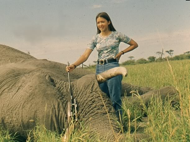 Esa niña tan mona de la foto es la hija de Harry Selby y ese elefante dicen que seguramente es el último cazado por el Mauser en .275 Rigby de W.D.M. Bell, más conocido como Karamoja o Longellynyung Bell. Lo mató a mediados de los '70 si mis cálculos no me fallan, porque ella es algo más joven que yo y sus familiares en los USA, buenos amigos míos en mi primera fase en ese país, tienen una hija de su exacta misma edad.