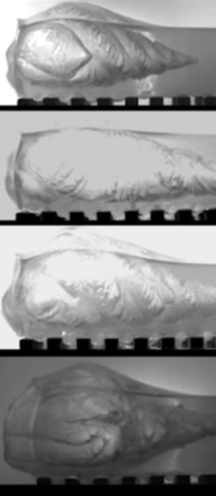 Fijate, 4 calibres, el 1° un calibre 223, 6.5, 6.8 y un .50....... ves la diferencia del canal de salida de los 2 de enmedio comparado con el ultimo de calibre .50 ........ daño interno en los primeros cm del calibre .50 estan fuera de toda duda, pero los otros 2 de enmedio tienen una mayor penetracion y los canales de salida seran mas grandes. :saluting-soldier: