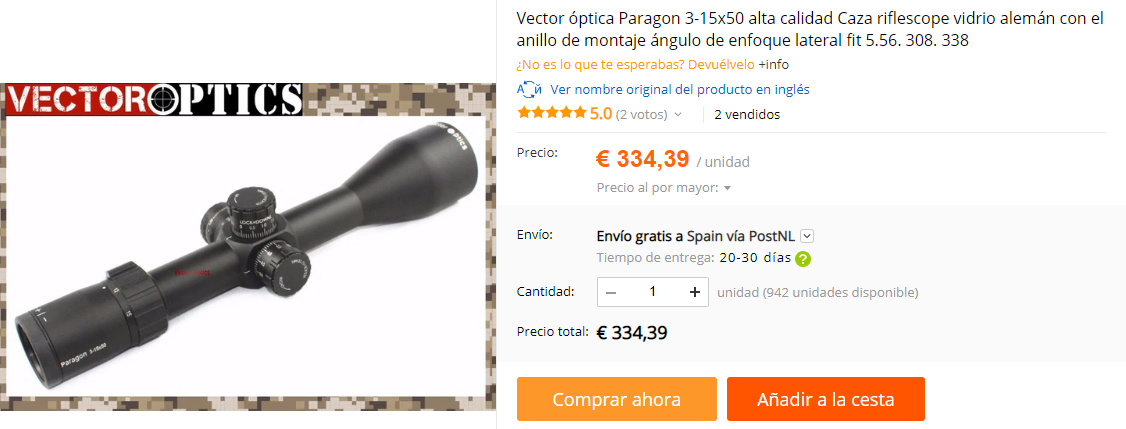 Solo hace falta mirar en Aliexpress, u otro vendedor on-line chino, las fotos y características técnicas de visores de las marcas chinas registradas, como Visionking, Vector Optics, Marcool, o Discovery, para encontrar parecidos extraordinarios, pesos, largos, nº de lentes, etc, totalmente idénticos a otras marcas de mayor prestigio, pero a la mitad de su precio......