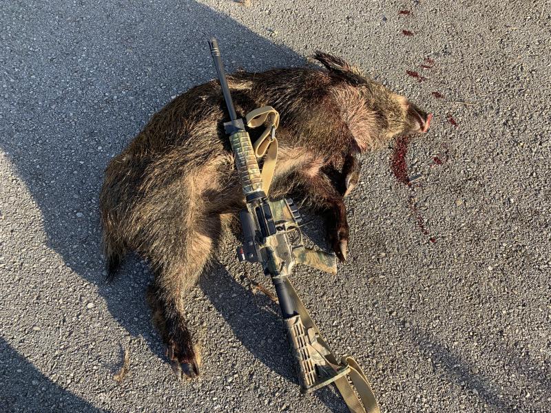 -Los jabalís cayeron casi al instante,tiros bien colocados y en un caso caminó 10 mts cerro abajo.