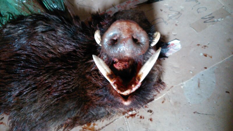 El jabalí de sierra más grande que he visto (140 kg y 26 cm de colmillo ) esta en mi chimenea lo abatió mi padre.