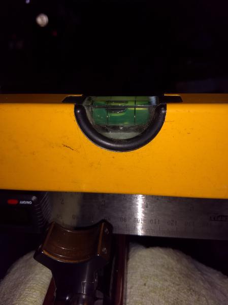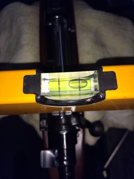 Eso tomando como referencia la base delantera, ya que entiendo que al tener mas superficie será la que mas apoyo tiene......pero para mas desconcierto me dije, voy a tomar como referencia el punto de mira trasero del rifle para tomar como nivel de orientación y cual fué mi sorpresa que ninguna de las dos bases queda a nivel con el punto de mira