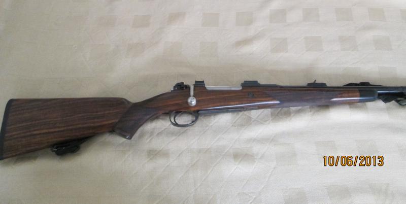 Te felicito por tu magnifico rifle y calibre . Imagino que te lo harían de encargo. Es un rifle de una estética espléndida y le presupongo igual calidad. De hecho llevo dos o tres años con la idea de regalarme uno . Me echa atrás el hecho de que no pienso ir a Africa y los calibres standard que ofertan no me seducen para este rifle y tampoco sus 56 cm de cañón . Otra cosa hubiese sido de haber en catalogo un 8x68 S y posibilidad de los 62 cm del magnun y 17,5 mm de diámetro de cañón. Una combinación perfecta : un gran rifle europeo con un gran calibre europeo.