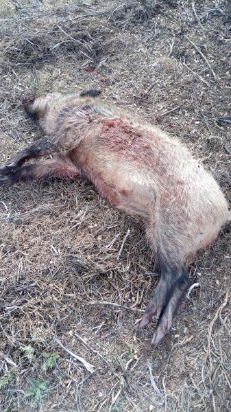 El tiro fue a través de unas densas escobas, calculando donde estaría, pues sólo asomaba un poco la jeta para ventear antes de moverse.