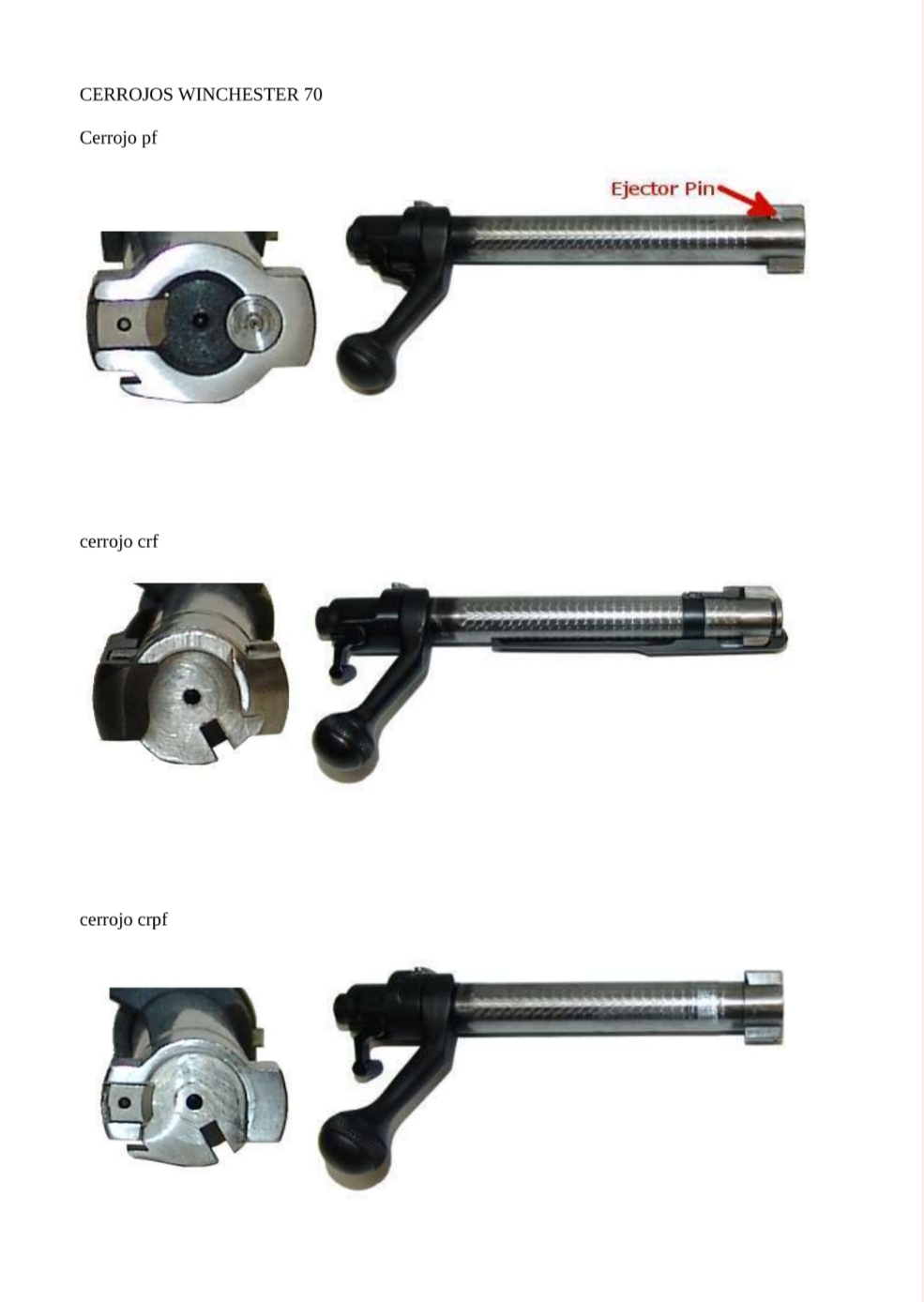 JohnWoolf escribió:Pues para que vayas lo menos a ciegas posible pídele que te mande una foto de la cabeza del cerrojo, donde se verá el paso de la lámina de la expulsora estática del pre-64 (o por el contrario el botón de la expulsora dinámica del post-64), la extractora no giratoria en garra del pre-64 (o la extractora integrada del post-64), el rebaje plano en la parte inferior de la cabeza del cerrojo para la subida de la munición (o la cabeza sin rebaje para el push feed del post-64) etc. Se distinguen muy claramente.
