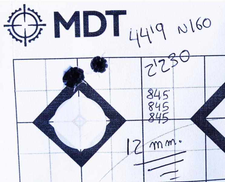 Actualmente con puntas Eld-macht 140 grains y Vitha N160 está haciendo grupos constantes de menos de 1/2 moa en las mismas condiciones , osea en el monte cuerpo a tierra y con apoyo de bipode.