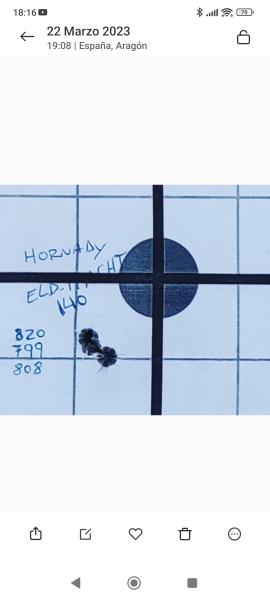 Cómo digo esas agrupaciones son con municion comercial y salvo la ELD-MACHT 140 y la TRG 136 el resto no me sirven ya que un zorro a más de 300 m. que es a lo que habitualmente tiro no perdonan esas agrupaciones abiertas.