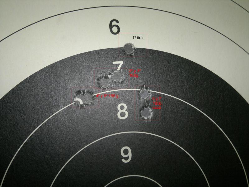 Por lo que veo al final hare varias pruebas con 40 o menos g. de t3000 una punta de caza de 165g/180 (menos carga)y sin engarce (o muy suave) y me llevare el crono al campo de 100 metros y tomare velocidades y comparare las "caidas" y "agurpaciones" con municion original del .307