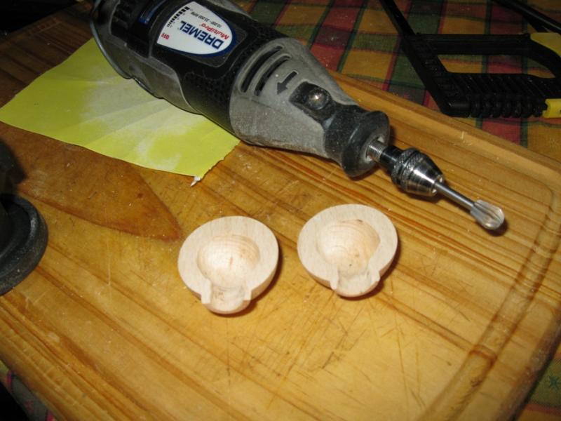 Hola a todos. Como soy un cagaprisas me he puesto con ello, por no disponer de nogal he buscado pomos de cajones o puertas de tipo comercial, para ensayar como quedaria y como realizarlo. He encontrado unas bolas de haya de 35 mm de diametro, he realizado el vaciado para la bola del cerrojo y me ha salido esto, que os parece? esta sin pegar ni lijar ni nada. No es redonda perfecta debido al cortey el lijado para dejar las dos superficies planas, pero casi ni se nota, si se pegaran y un poco de lija, seguro que se aproximaria mucho. Un saludo