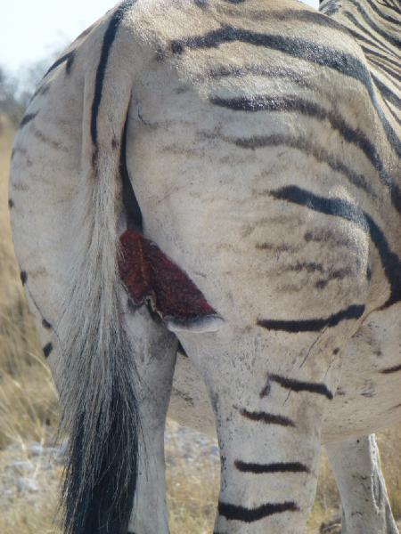 Se libró del león/a, de momento, pero con los zarpazos que se ven y la mordida... presa fácil.