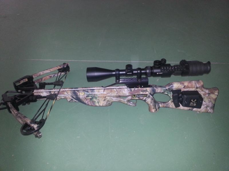 nose, un conocido la tenia asi y me apañe el monocular. Es un pulsar challenger gs 1x20, 1 primera gen+. se ve bien, y mas aun cuando le metes el iluminador ir infrarrojo adicional. A eso le añades que la ballesta no se oye cuando dispara...