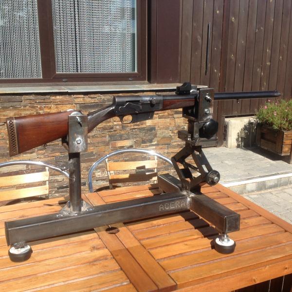 Robertocazaruta escribió:Éste es el que tengo yo, lo hice partiendo de un gato de coche (escogiendo uno que venía muy ajustado, de un Alfa Romeo para ser exactos), con unos cuantos tubos, recortes de chapa gruesa, varilla roscada, un poco de goma y unos pomos de plástico. Al final 11kg de banco de tiro tremendamente estable por poco más de 25€ y unas cuantas horas de bricolaje.