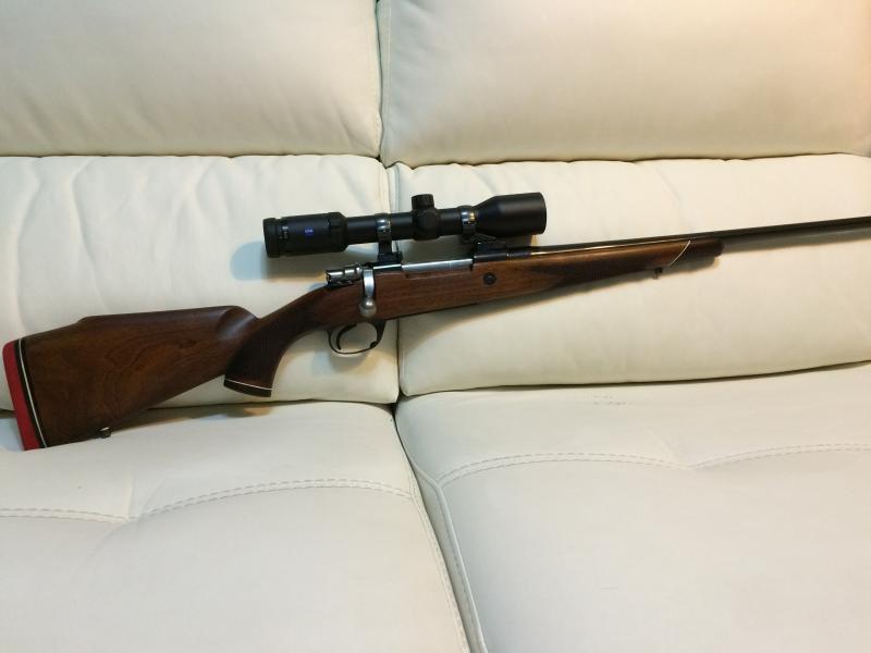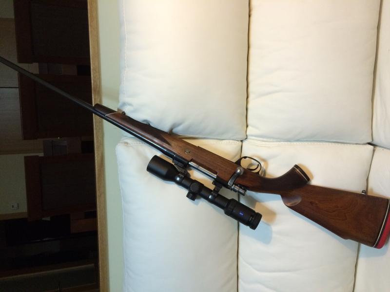 Bueno pues ya he terminado la customizacion de mi Santa 7x57, lo he vuelto a pavonar ya que antes parecía que tenía una mano de titanlux,le he puesto cantonera holland,repasado los picados,lijada la culata y puesta al aceite, cambio de visor por un zeiss conquest Dl 2-8x42 óvalo con iniciales, le he puesto un gatillo timney, puesto a tiro con Norma Oryx de 156 gr y a 150 metros los mete en una moneda de euro fácilmente, estoy muy contento de cómo ha quedado y sobre todo por que es todo español, Rifle y calibre, espero que os guste.