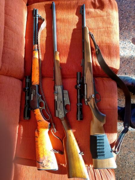 De izq a dcha Marlin 336, Remington 8 y Remington 600