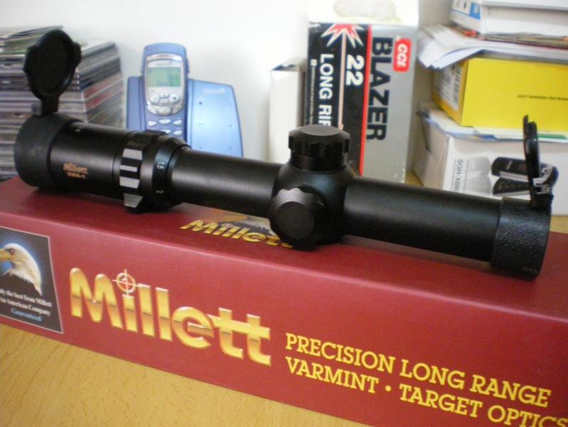 Ya están aquí las gafas para el nene. Es un Millet DMS-1 Designated Marksman 1-4x24, con una relación calidad-precio difícilmente superable. Cuando salió a la venta, hace algunos años, era difícil hacerse con uno, sencillamente duraban menos que un caramelo a la puerta de un colegio.