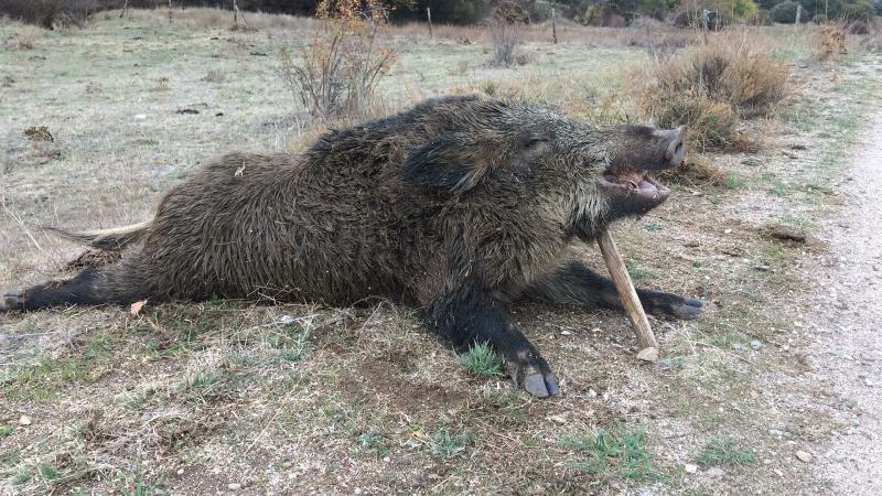 Jabalí de unos 80 Kg. Distancia sobre 70 m