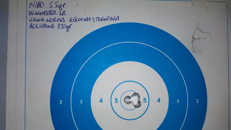 Antes de hacer la prueba con las SST, tire una diana con las Hornady SP de 180g para poder comparar las agrupaciones y las variaciones de los lugares de impactos. Las tiradas fueron todas en galería a 100 metros.