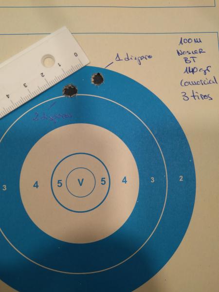 Damos por sentado que el rifle agrupa, lo que estamos averiguando es con que municion comercial o tipo de recarga agrupamos mejor, primero a 100m y luego ya ser vera si podemos colocar alguna diana a 200/300 en el campo .