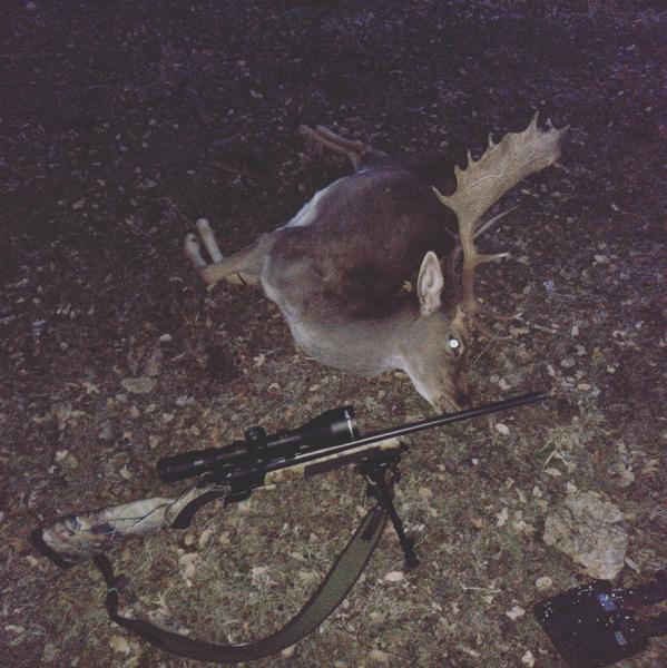 Mucho hablar y poco cazar, mientras tanto el 308 y las balas barnaul en mis manos siguen cobrandose victimas, este gamo del sabado tiro a 150m se me va tripero abro rifle, saco vaina, meto cartucho cierro rifle me tumbo y tirandole de culo alejandose apuntandole en el centro de los cuernos pum tiro en la nuca y desplomado, ni el semi ni el 30-06 salen ya... Pa que...