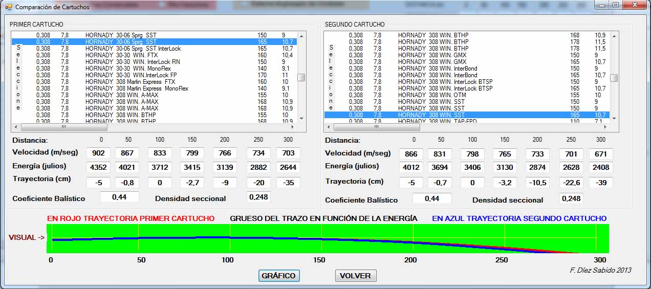 No seamos gilipollas y no nos perdamos en que el 308 cae un centímetro más que el 30.06 a 300 metros o viceversa; ¿o acaso eres capaz de afinar un cm a esa distancia en tiro de caza? En cualquier caso, eso quedaría compensado con dos clicks en la torreta (fíjate tú qué problemón). Así que vayamos a lo práctico.