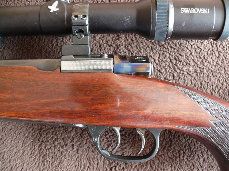 Señalar que la culata es una de Torres adaptada y que el seguro, la palanca del cerrojo, el vargasport, el punto, el alza, el ejoyado del tope del cerrojo, el flotado y el pavonado matizado y el encamado es de Pedro.
