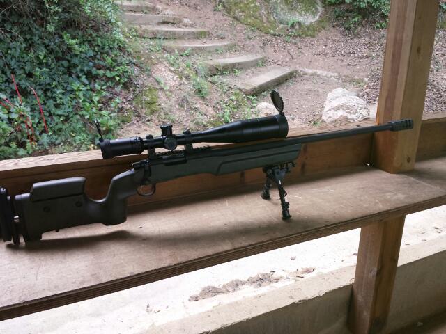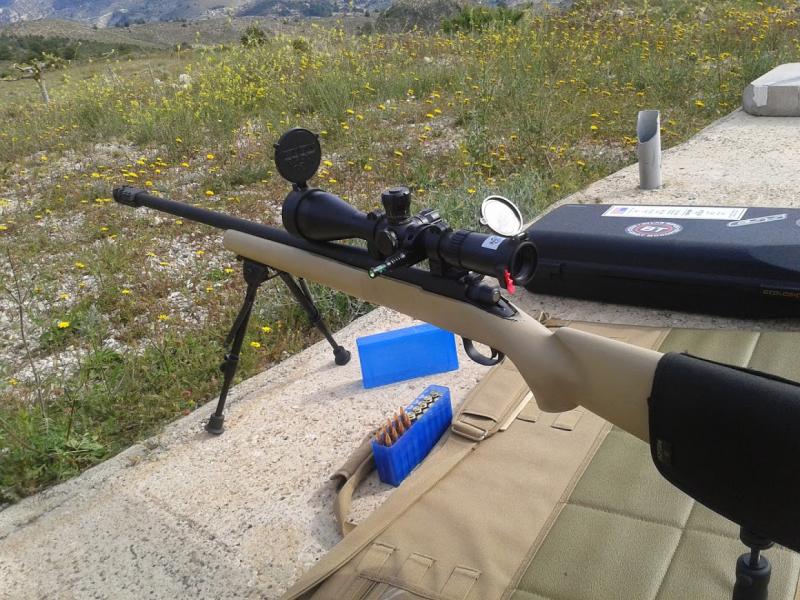 308 de andar por casa con su cuerpo original pintadito por mi menda, monopods BT04, freno de Roedale C21, bipode "guarris" y visor Bushnell Elite Tactical 6-24x50 con retícula G2DMR.