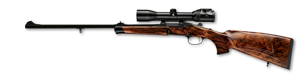 Para mí escogería, si pudiera comprarlo, éste: el monotiro de Blaser K 95 Attache en 6,5x55 ó en .308. Un rifle ligero pero hecho con excelentes materiales. Cañones intercambiables dentro de su grupo y dos cartuchos de largo recorrido, precisión y contundencia sobrantes. La belleza del arma y la calidad, supongo que no se discuten.