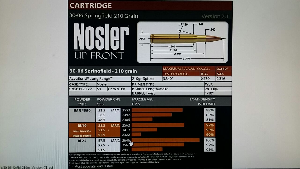 Pero aún así y todo... La suerte del 30.06 y de los calibres 30 en general es que tiene de todo para elegir. ¿Que quieres meterle enormes cantidades de peso para que tenga que llevar una parábola más alta? Pues toma este cartucho y te pones a comparar CB y DS. Hala pues. Mira a ver qué te dicen estos datos de un cartucho cargado con la horrrrrrorosa cantidad de 210 grains, majete (usa esas cifras de velocidad y CB en calculadora balística y los comparas con el 270 sin olvidarte de la energía y miras a ver cómo van de velocidad y tal en boca y más allá, mucho más allá)