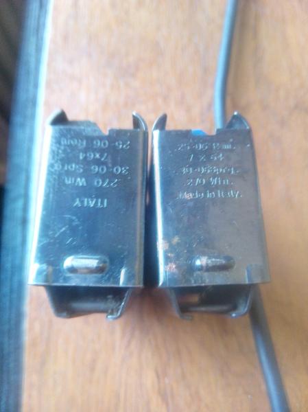 El de la teja azul es "la imitacion" y el de la teja negra el que venia con el rifle, como puedes observar el original y la imitacion son hechos en Italia, y el muelle elevador cambia de uno a otro... que por cierto la Imitacion, no alimenta bien el rifle si el muelle no esta completamente asegurado detras de la muesca