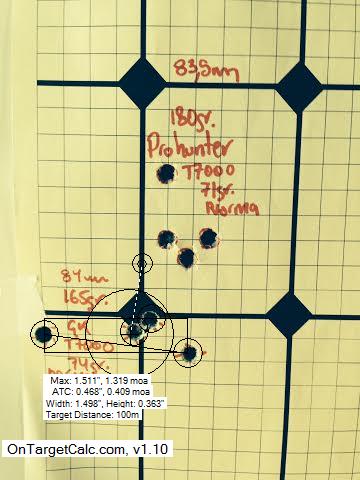 También he cambiado de componentes como me aconsejo vbull, es decir he cambiado las vainas y no me ha disgustado como va la pro hunter de 180 con vainas norma. La q no me va bien de momento es la punta de 165 gr, también probé con unos retales de bst 150 q tenía y fue bastante bien juntando dos pares de tiros en el mismo impacto y eso q use vainas winchester plateadas, las voy a meter 78 gr de pólvora y usar vainas rws a ver q tal van.