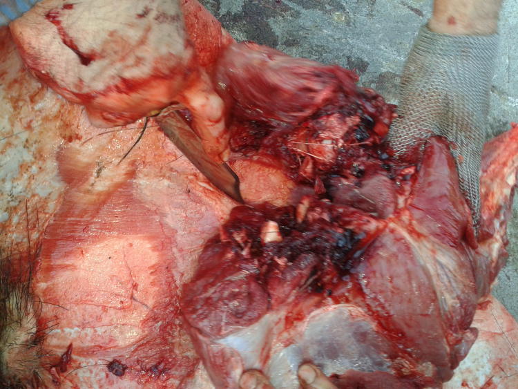 La bala atraveso las dos paletillas con una expansion dijna de ver.