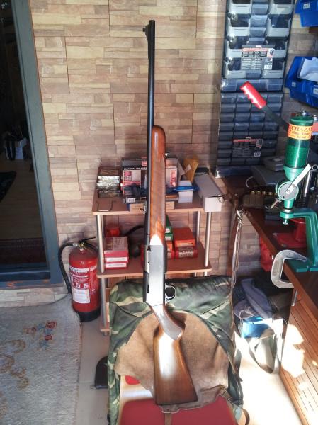 Bueno, venga vaaaaaaaaaaa, unas fotitos del mio, que coste que yo no utilizo semis para cazar, pero este hace dos semanas en manos de mi vecino, mato un ciervo aquí en Galicia, que le levantaron mis perros, es igualito que el de jabaliviejo y en el mismo calibre, (según algunos un calibre que no mata, 30-06