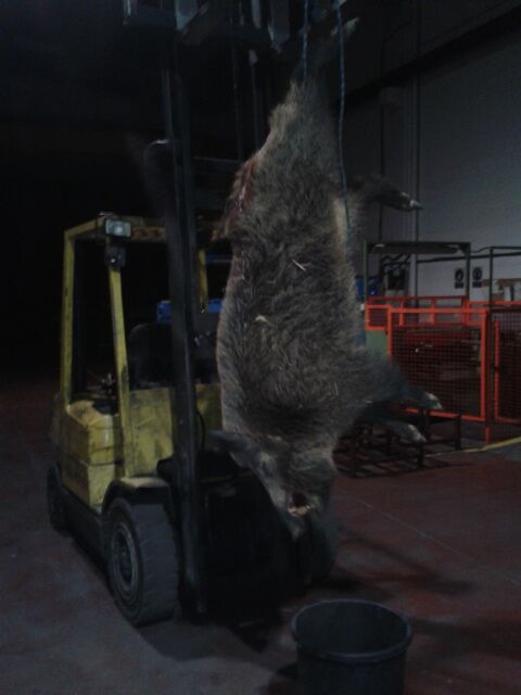 Cansino.... ¿Eso que cuelga de la carretilla elevadora es un jabalí o un oso? Es que es muy grande el bicho (o la carretilla muy pequeña)
