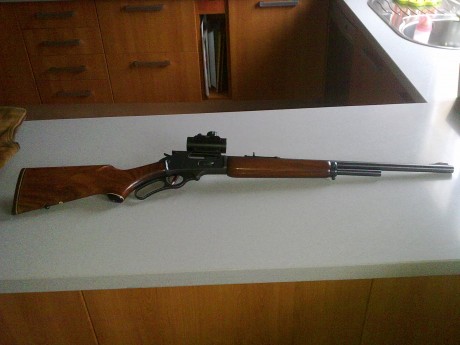 compañeros, si Dios quiere y no pasa nada, mañana voy por mi marlin 444 a la intervencion, lo he comprado de segunda mano pero parece que está muy bien, tiene un visor de punto rojo bsa, no se como irá pero tengo pensado en ponerle un holografico, pero bueno a ver como esta el rifle y luego ya veremos, no tiene la culata picada ni tampoco el pasamanos, son lisos, pero me imagino que será el mismo rifle que si lo tubiese picado aunque no tan bonito, la verdad, y nada cuanto lo tenga pongo unas fotillos y ya me comentareis, que tengo unas ganas.... un saludo