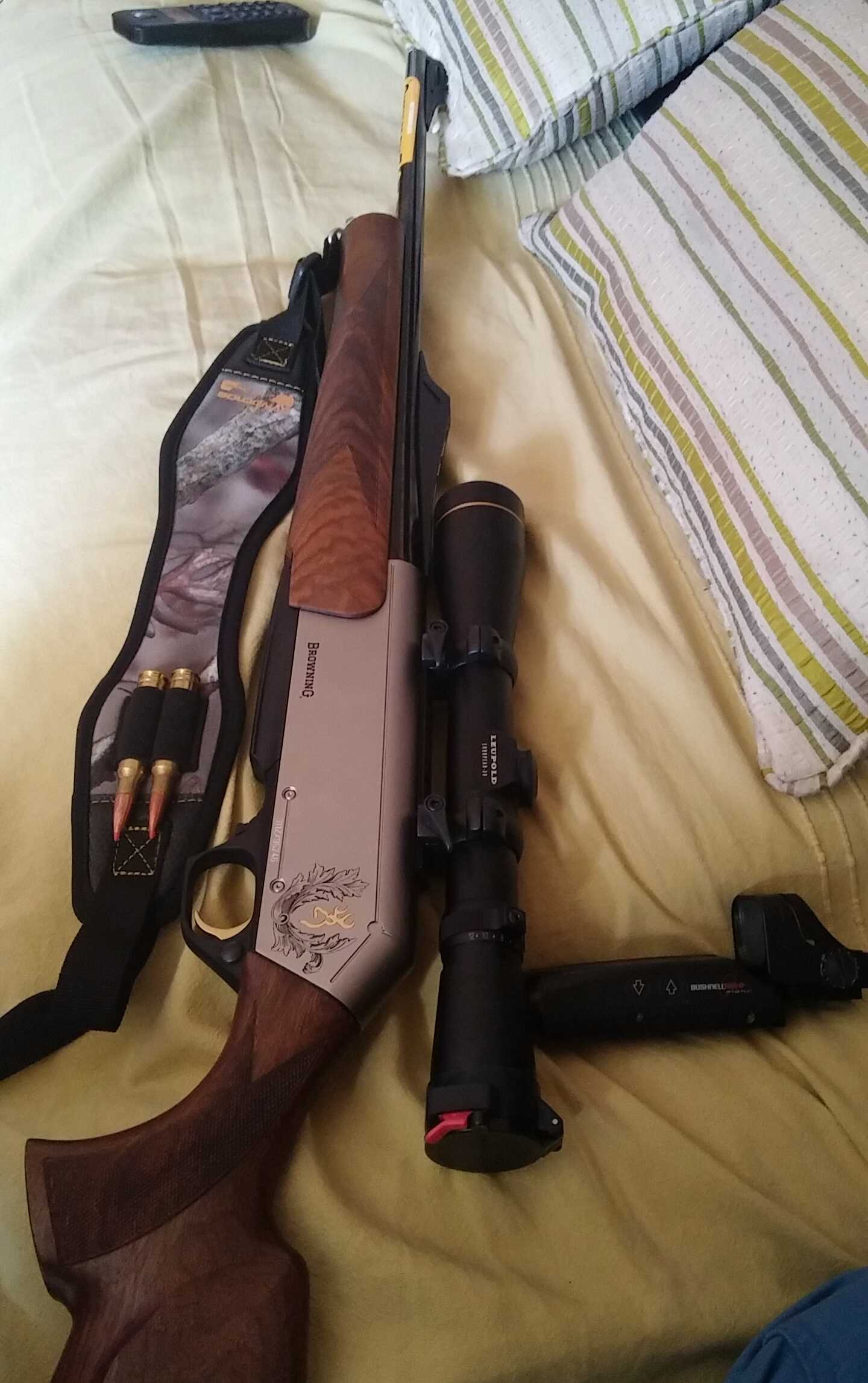 Por cierto veo que no le as quitado la pegatina esa amarilla, pues paciencia a mi me costo un huevo y después de quitarla la mancha de pegamento no se iba y ya desesperado, lo tuvo que terminar mi mujer, no recuerdo con que, si alcohol de limpiar o otra cosa, pero yo estaba acojonado por el pavón, casi llamó a browning para ver que tenía que hacer