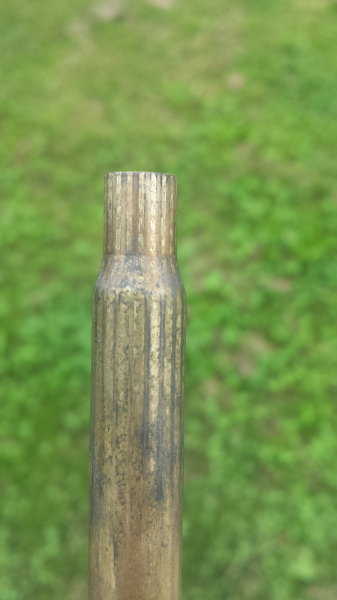 Hoy he podido probar el rifle y el problema sigue teniéndolo. Sigue teniendo como sobrepresion en las vainas. Aunque ahora algo menos.desde que lo limpie no marca tanto las vainas pero aun se quedan atascadas.pongo unas fotos de una para que verla como keda.